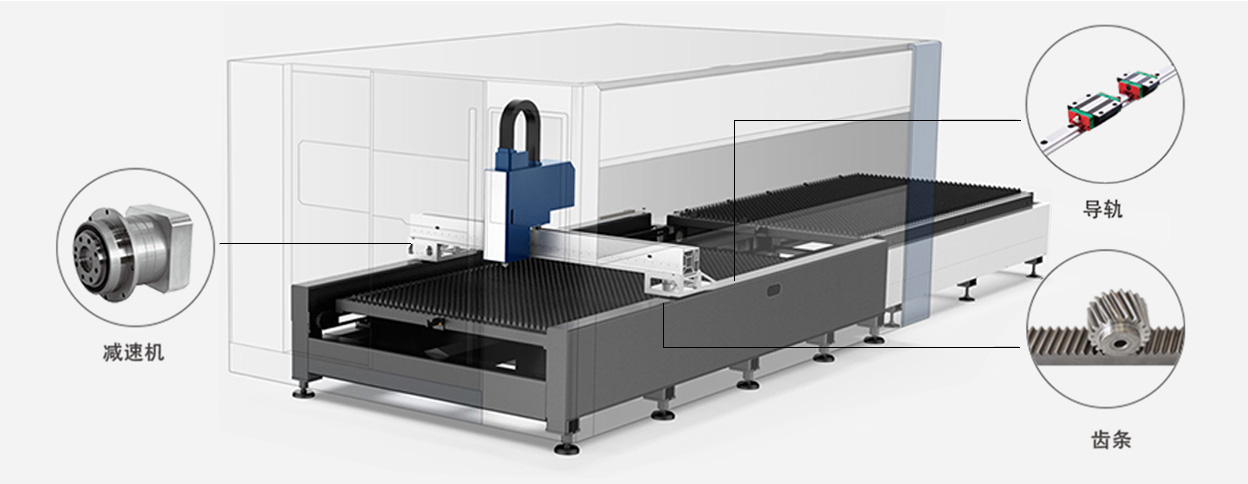 齒輪齒條傳動(dòng)系統(tǒng)剛性好、精度更高, 節(jié)約了上下料等待時(shí)間, 相較于傳統(tǒng)的鏈輪鏈條傳動(dòng)方式 ,它的各方面性能都有顯著提高,快速實(shí)現(xiàn)平臺(tái)交換。